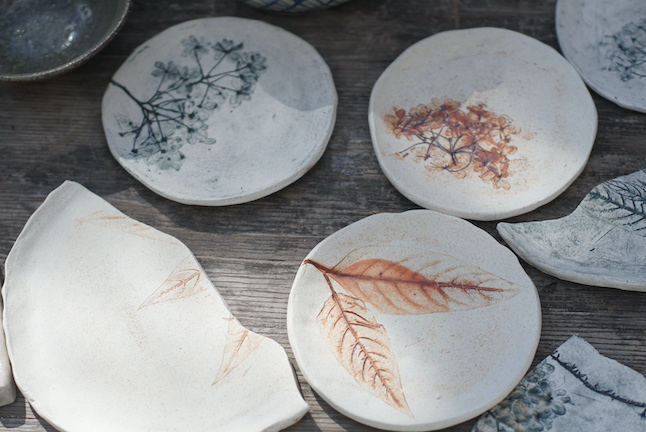 いつも家で作った作品を幾つも持参されるほど熱心な生徒さんです。轆轤びきも手捻りも暖かな作品に仕上げています。