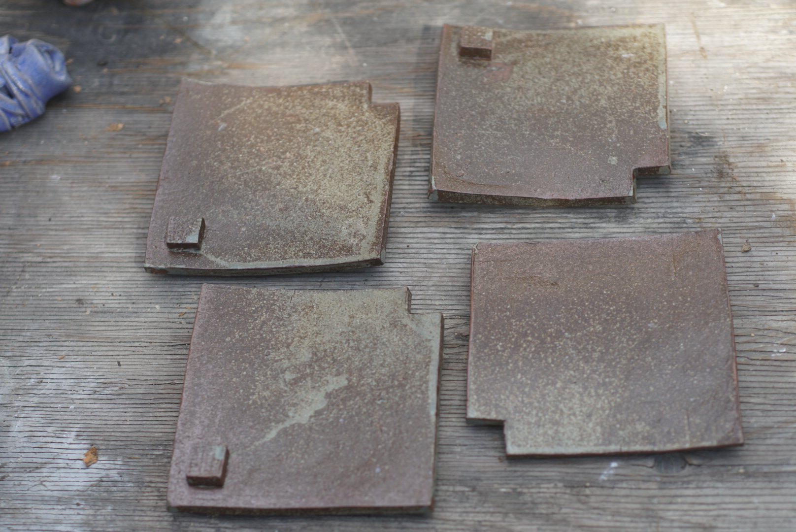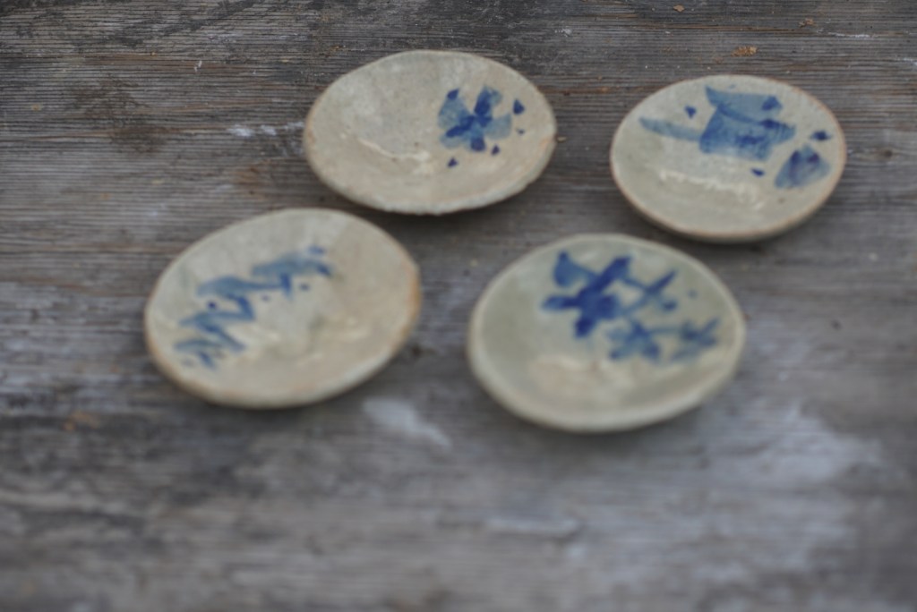 板作りの小さなお皿。青呉須で絵付し、土灰釉を掛けました。青呉須の濃淡がきれいです。