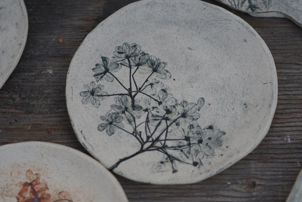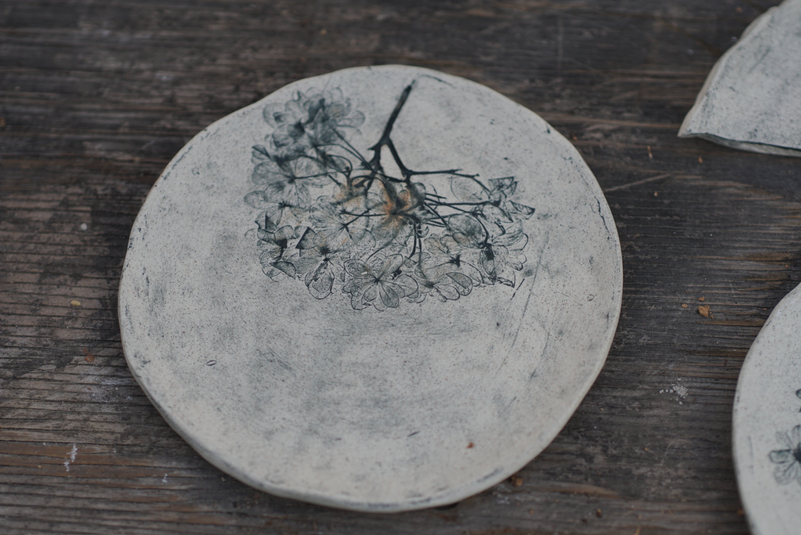 板作りのとてもおしゃれな板皿です。赤土に土灰釉を薄がけしました。