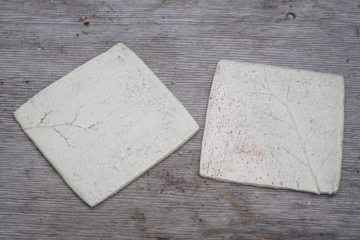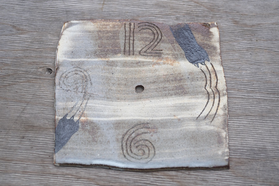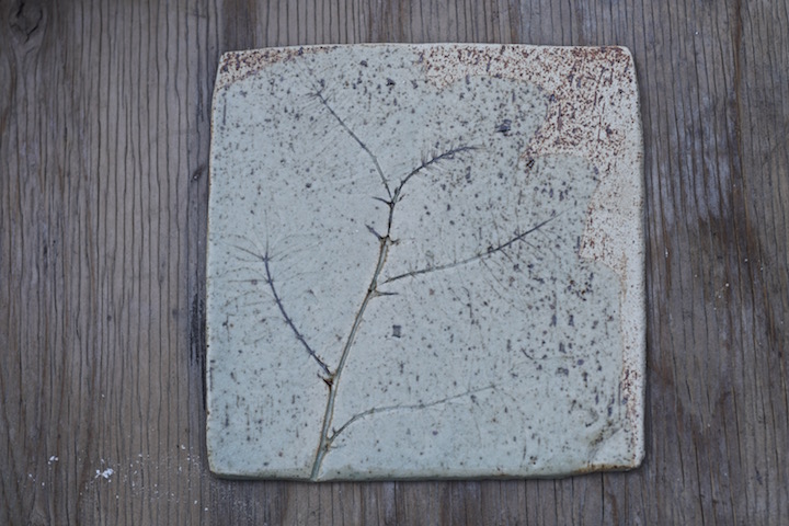 板作りの平皿。植物の歯を押し付けて鬼板で象嵌しました。鬼板が淡くなってしまいましたが、もう一度還元で焼いてみようと思います。