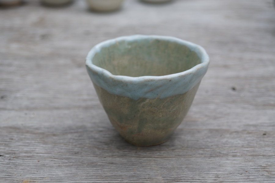まだ数回目の電動轆轤の作品です。少しずつ慣れてきたようです。今が一番面白い時かもしれません。釉もいろいろ試してみました。