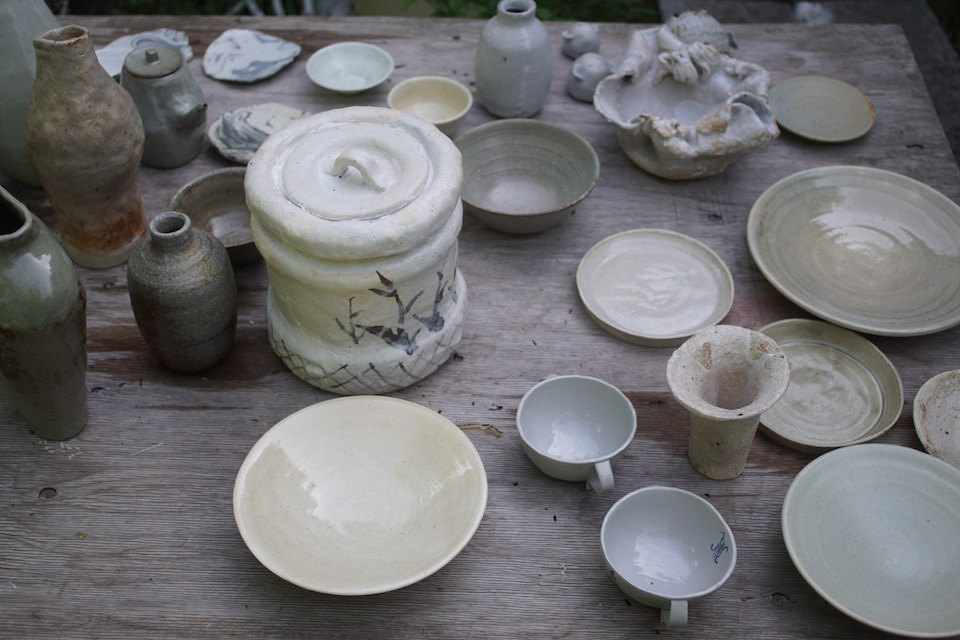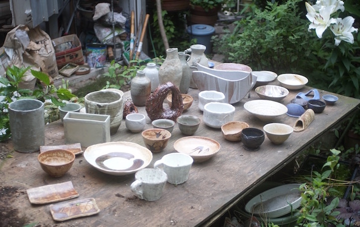 やっと長雨が上がり朝から窯焚きしました。途中何回か突然の豪雨に。不安定な今年の晩夏です。全体的にはまずまずの上がり。ただ亜鉛を使った乳白釉は今回も釉が切れた作品が多くさらに調整が必要です。