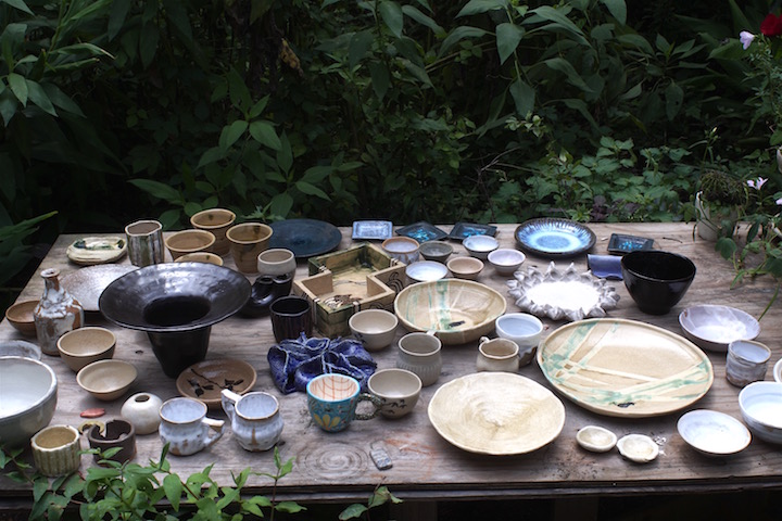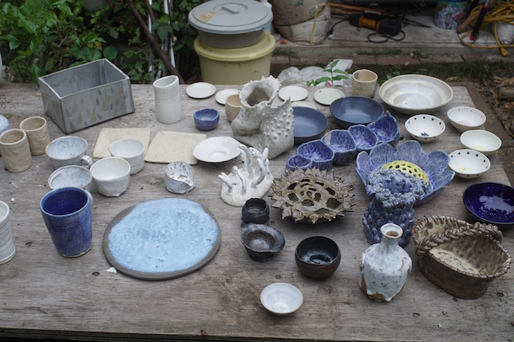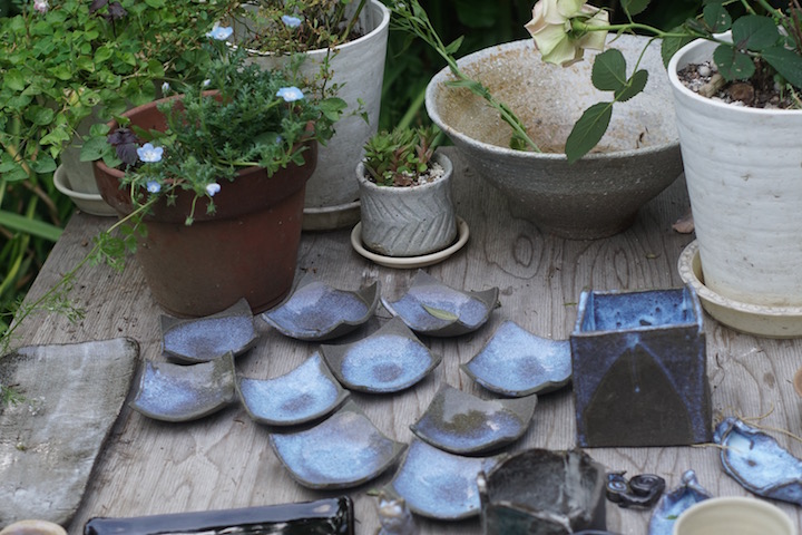 窯焚きした14日は一日中冷たい雨が降っていましたが、窯出しの日は初夏を思わせる日差しでした。天候の変わりやすい季節です。鞘を入れた作品や新しく作った釉薬をかけた作品などです。還元焼成の特徴はでているものの弱めにかかったようです。何度やっても還元焼成は難しいです。今回窯出しした生徒さんの作品を掲載いたします。