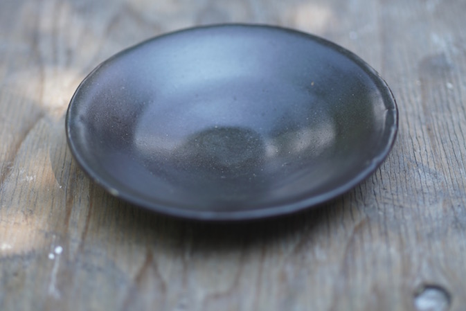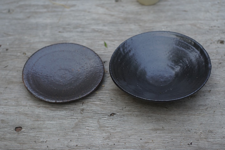 大皿は電動轆轤成型でとても難しいものです。まだ数回の電動轆轤ですがかなり上手くひけています。釉は鉄とマンガンで作ったオリジナル釉です。