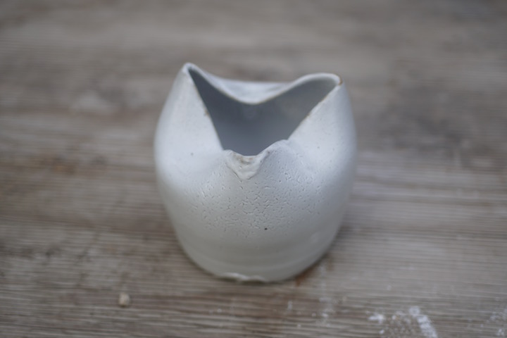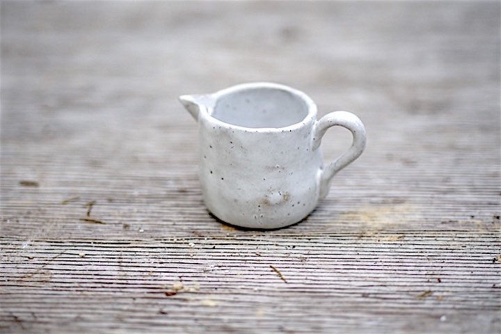 新しく入られたCKさんの初めて焼きあがった作品、ミルクピッチャーです。初めてとは思えない作品、形にも釉にも強いこだわりを持って丁寧に作陶されています。