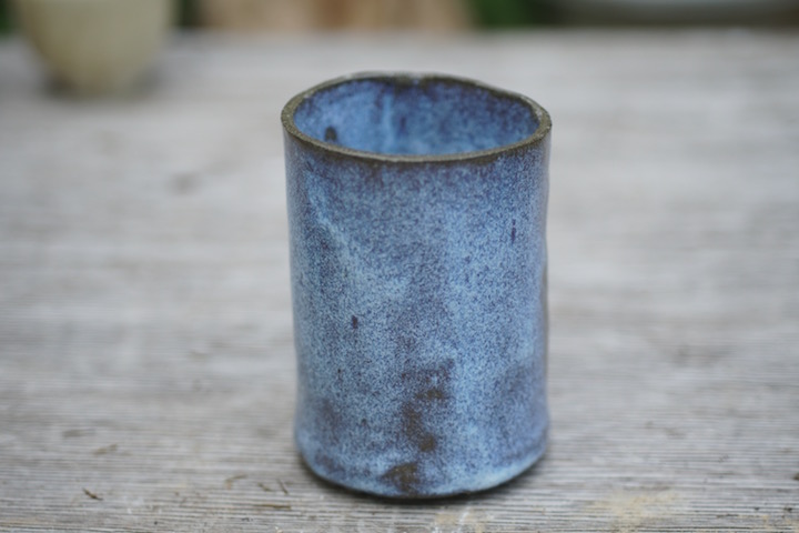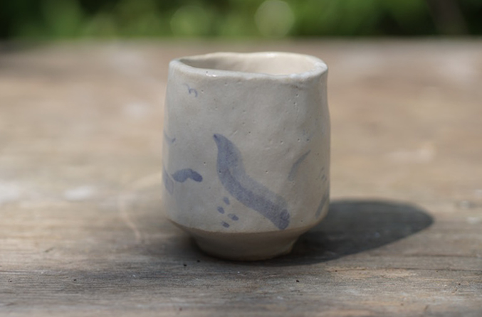 「紫月窯」では初めての手びねりの湯呑み。初めての作品ですが呉須で絵付けをされました。呉須の濃淡、そして絵付けの位置のバランスがとても良いと思います。