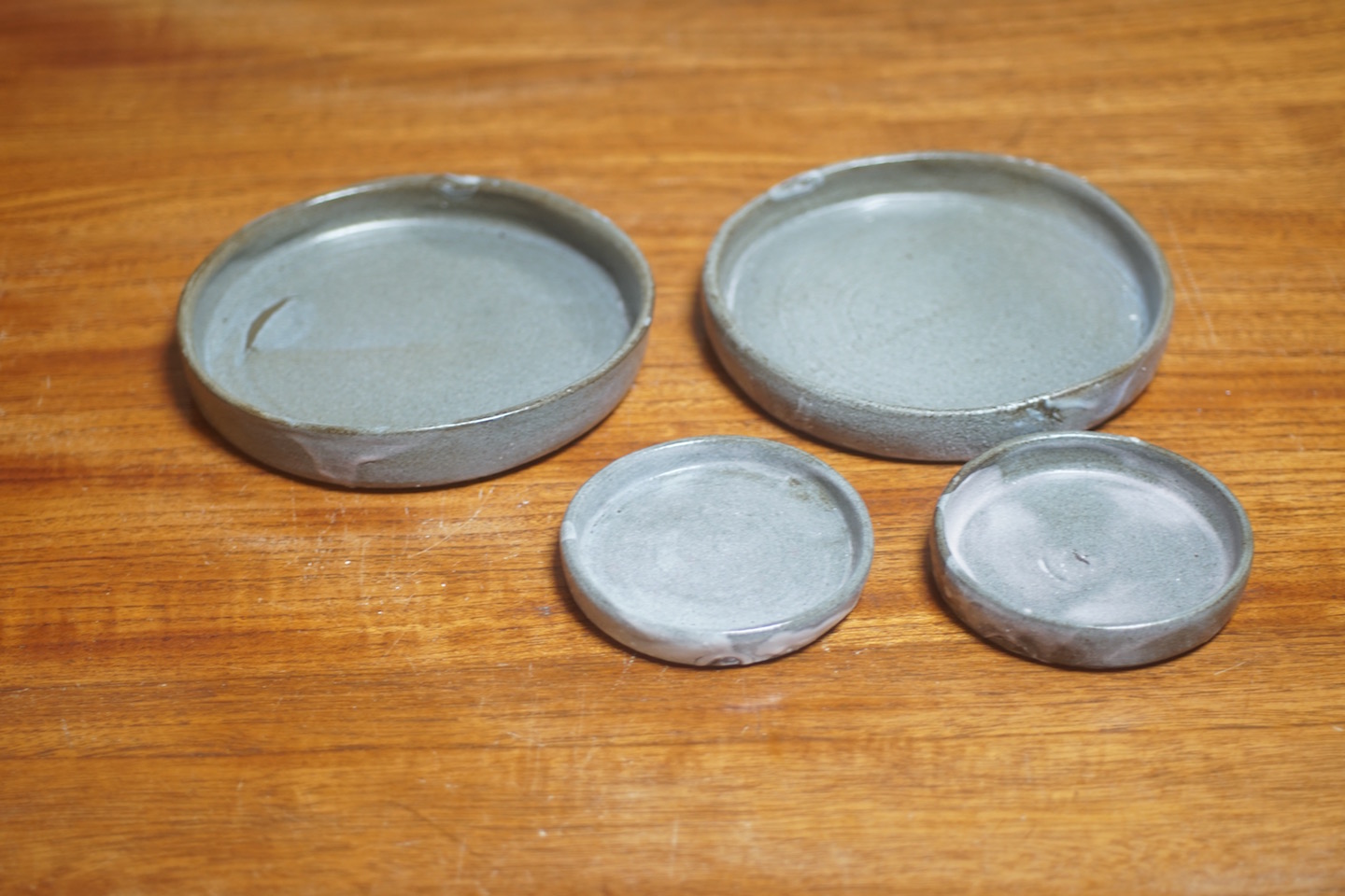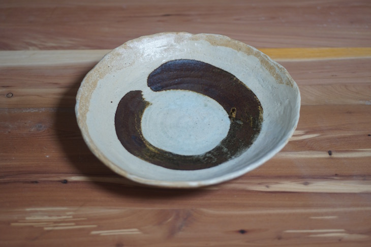 電動轆轤で轢いた皿。電動轆轤では皿が一番難しいと言われます。厚みを均一にすることなど難しいです。釉は新しく調合した土灰釉を使いました。