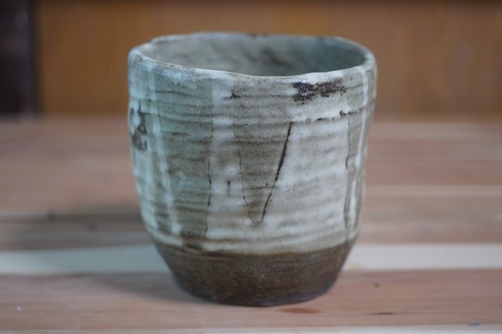 電動轆轤はまだ始めて間も無い作品なのに、バランスが良く飲みやすそうな湯呑みです。還元焼成らしい落ちついた色も良いと思います。