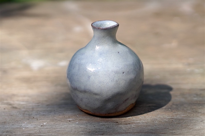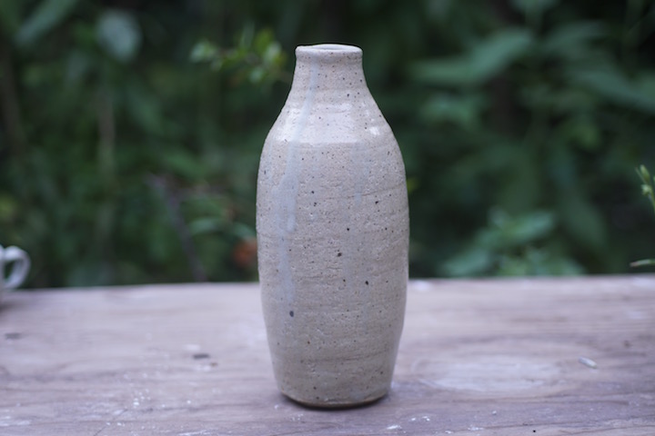 電動轆轤を使った小さな花瓶。口の部分を絞っていく形を作りました。初めのうちは土の量の偏りがでて作りにくいものです。電動轆轤は何度も何度も数をこなす必要があります。