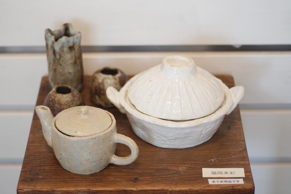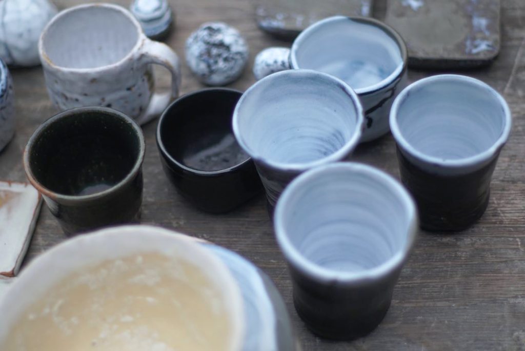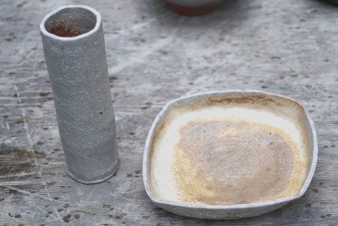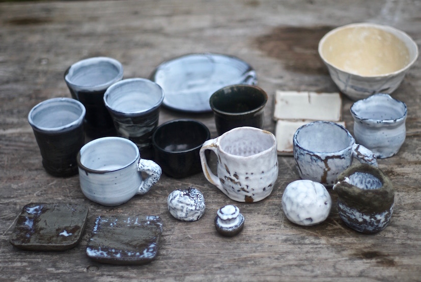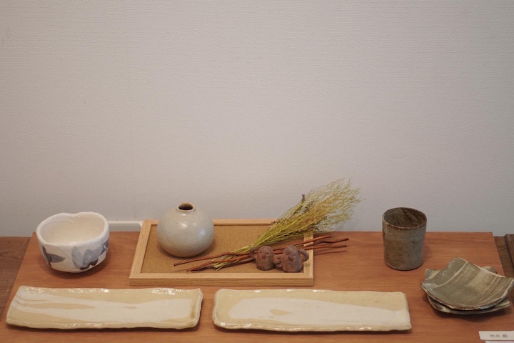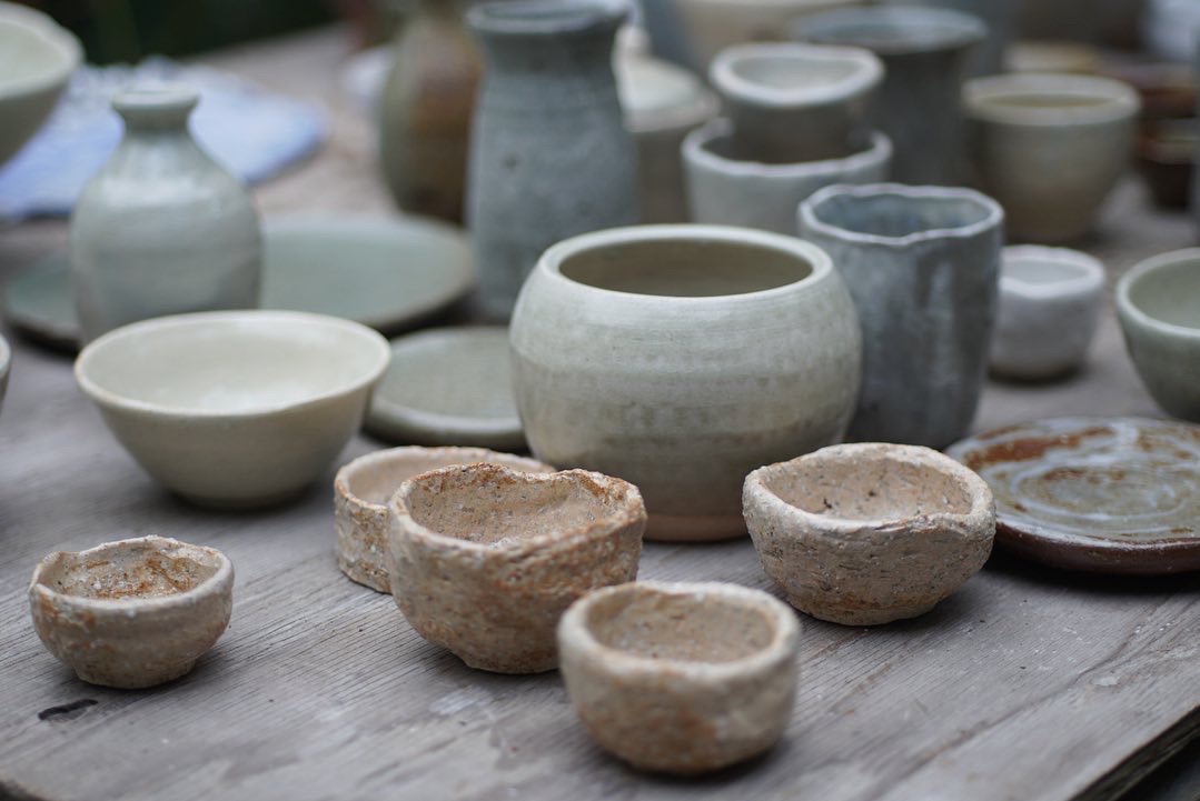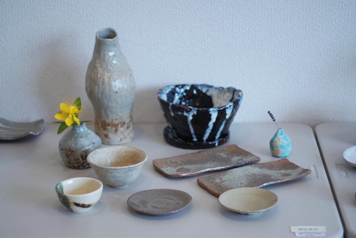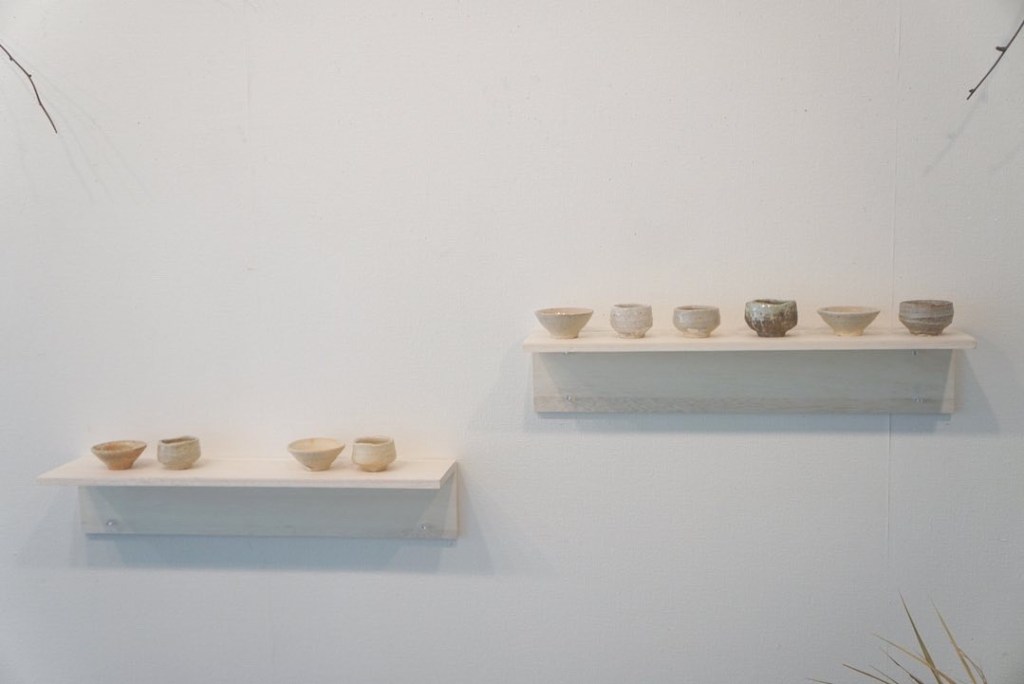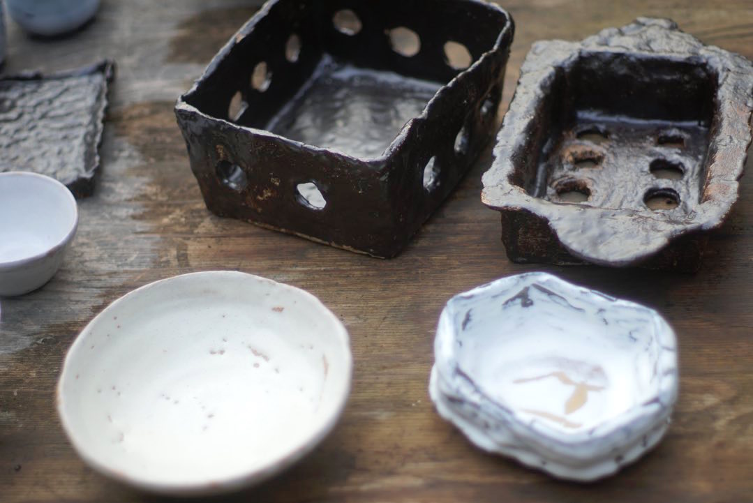 様々な日常使いの雑器。いろいろな土、いろいろな天然の木の灰を使った釉を施釉しました。紫月窯に入って初めて土に触れ、大変研究熱心に取り組まれています。静岡の実家で貰ってきた梨の木の灰を調合した自作の釉も使いました。