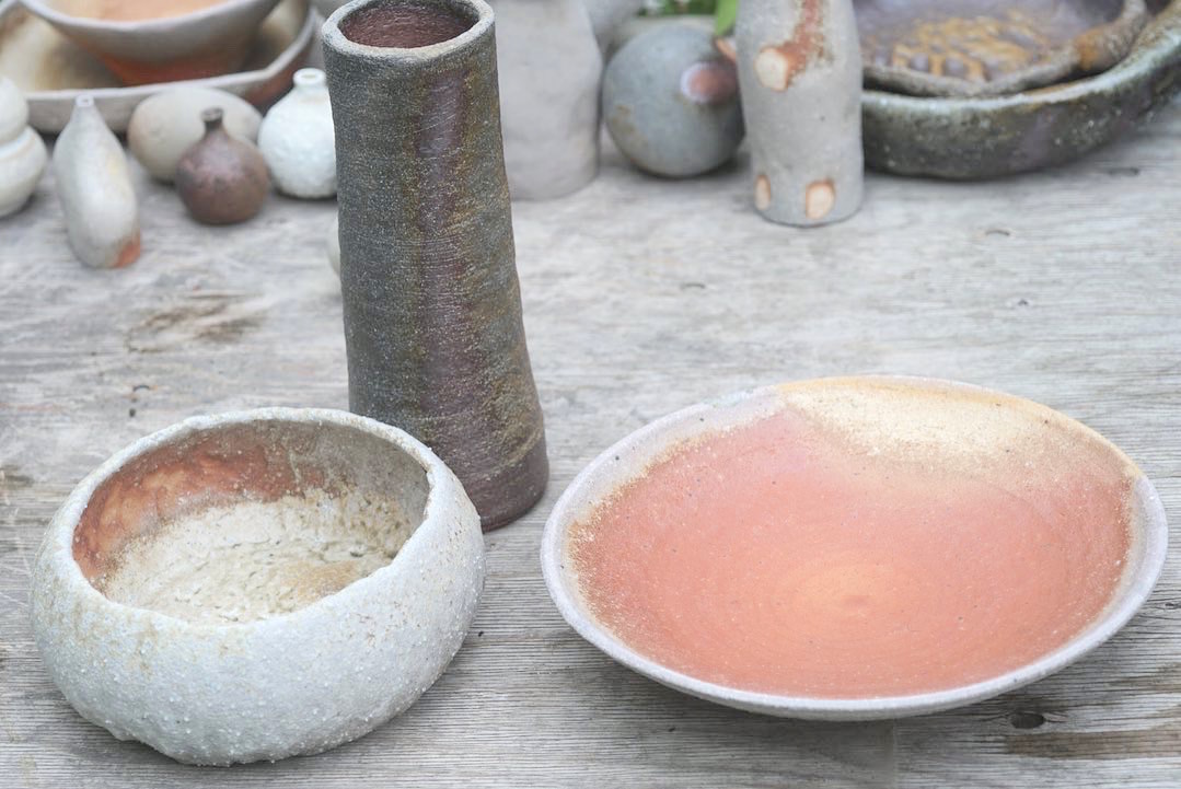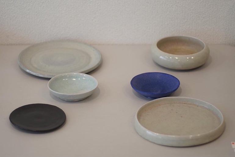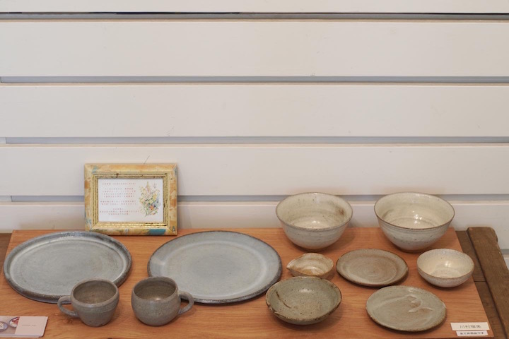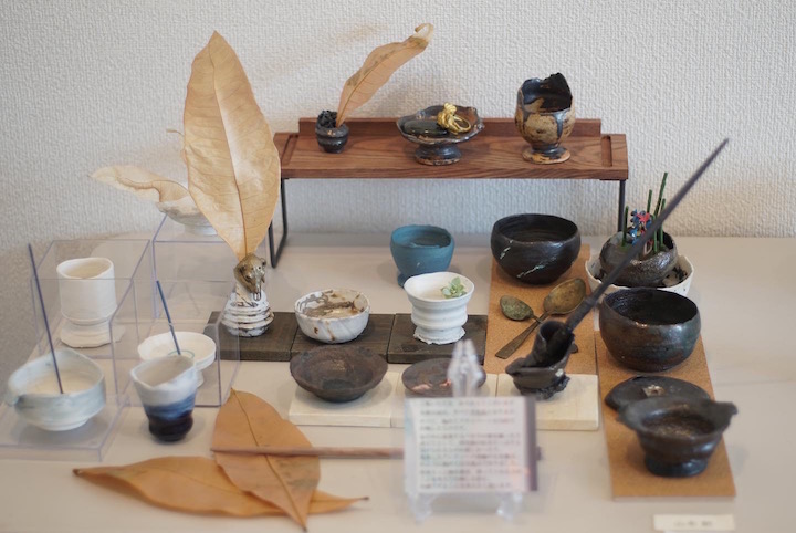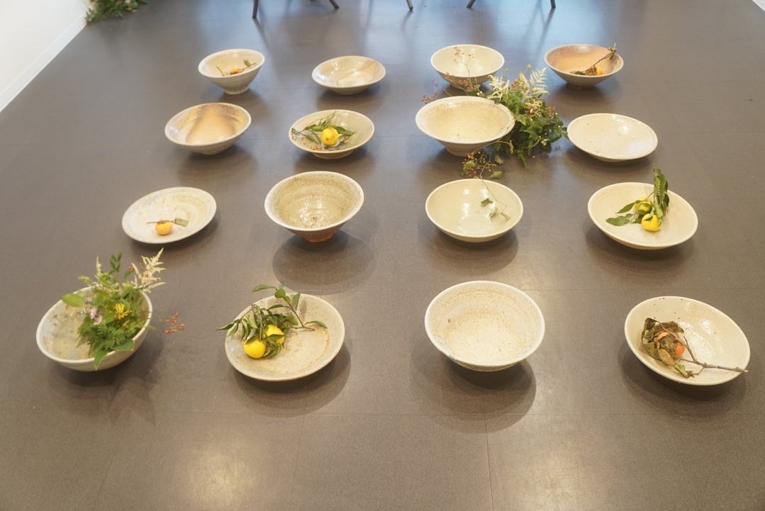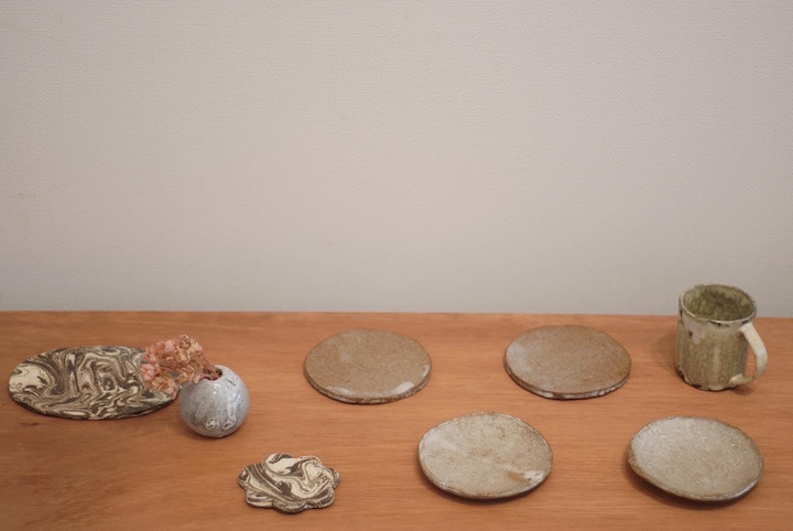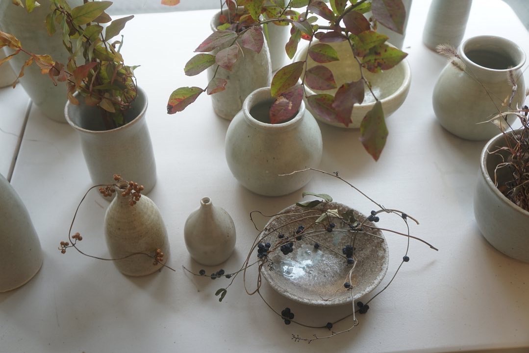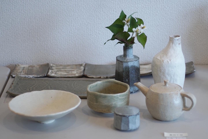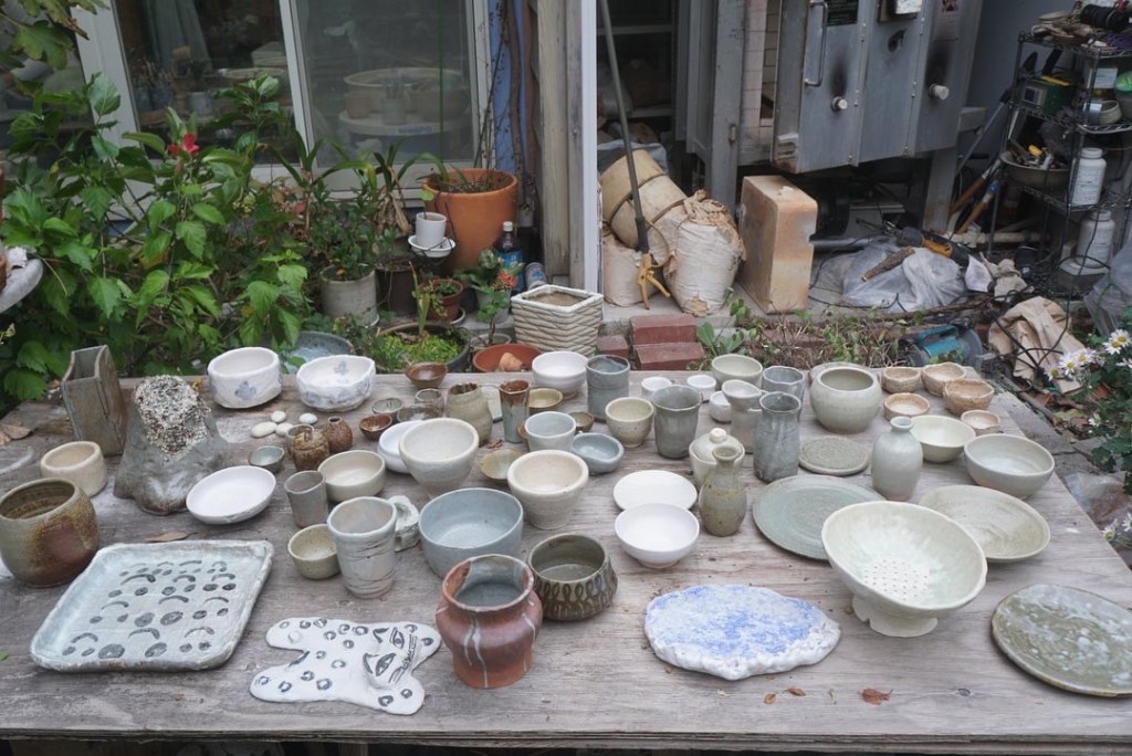様々な日常使いの雑器。いろいろな土、いろいろな天然の木の灰を使った釉を施釉しました。紫月窯に入って初めて土に触れ、大変研究熱心に取り組まれています。静岡の実家で貰ってきた梨の木の灰を調合した自作の釉も使いました。