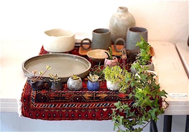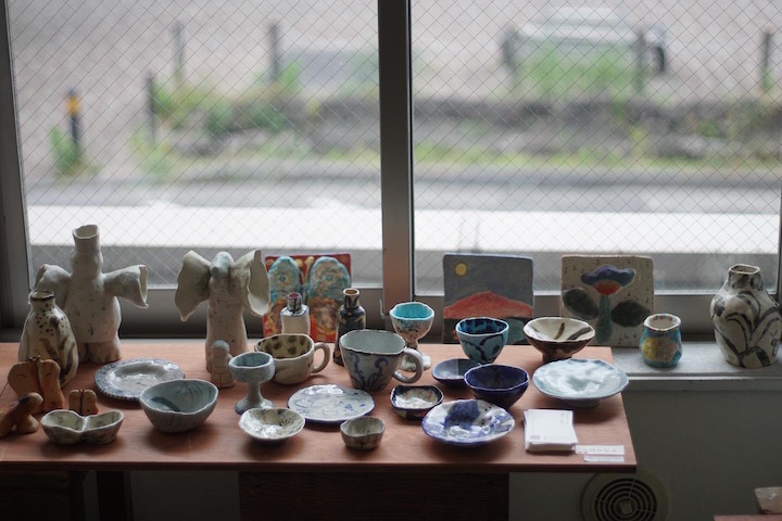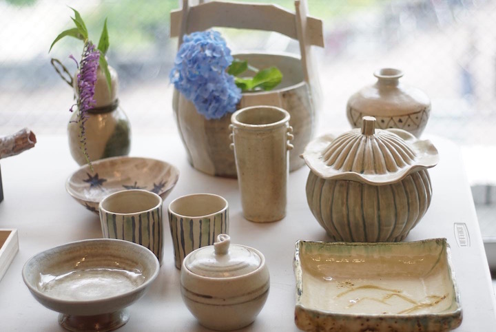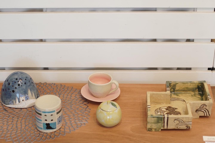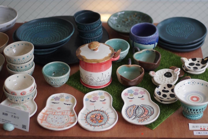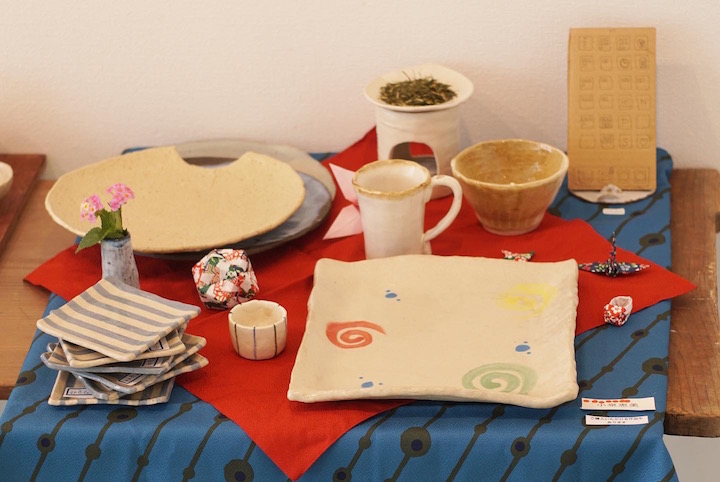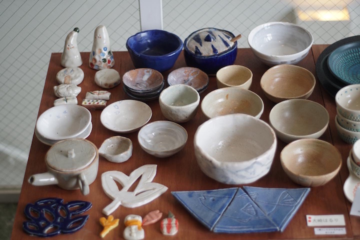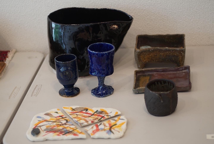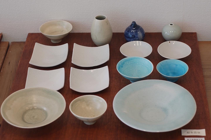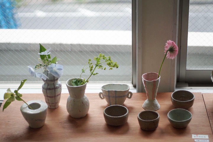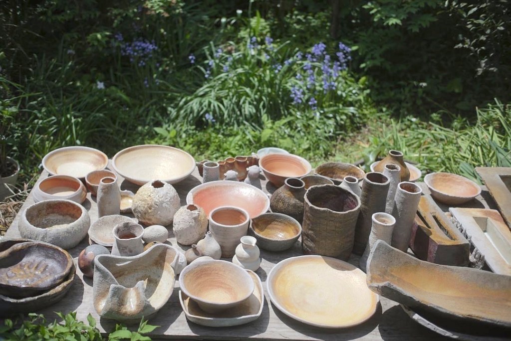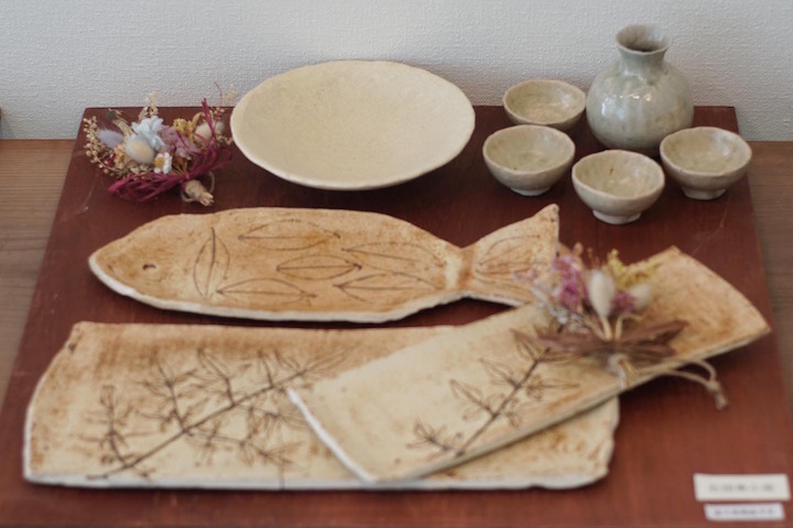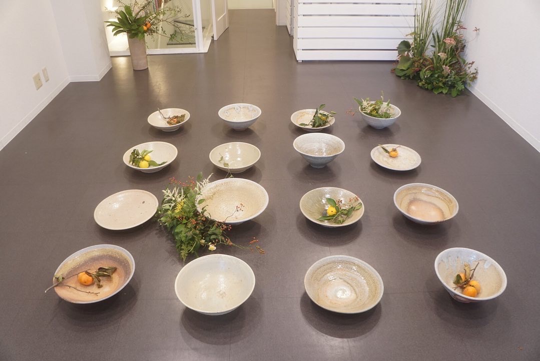 様々な日常使いの雑器。いろいろな土、いろいろな天然の木の灰を使った釉を施釉しました。紫月窯に入って初めて土に触れ、大変研究熱心に取り組まれています。静岡の実家で貰ってきた梨の木の灰を調合した自作の釉も使いました。