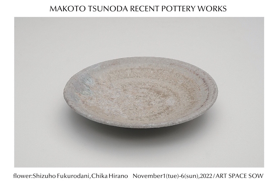 うしろの作品は直径30cmほどの大きさの電動ロクロ挽した大皿です。みかんの灰を使った紫月窯オリジナルの釉を掛けました。下の二つの一輪挿しはやはりロクロ挽きしほぼ同じお形にしました。仕上げは今回初めて使う枕崎の鰹節を作るときに出た樫、椎、クヌギなど広葉樹の灰をオリジナルの調合で作った釉を使いました。