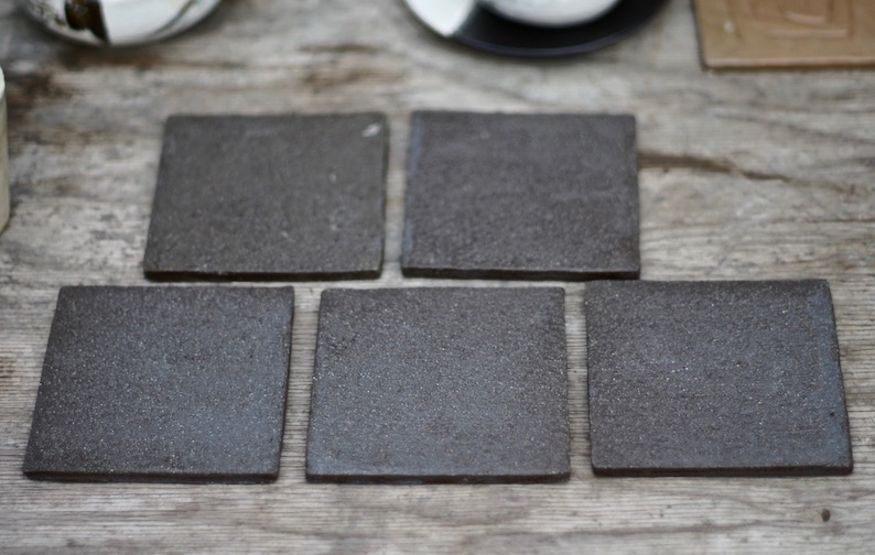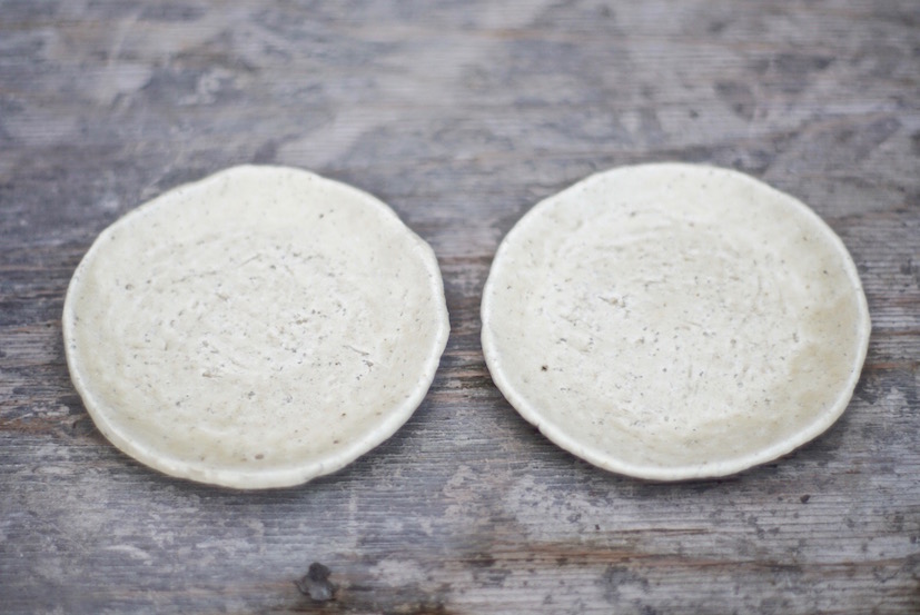 初心者コースのTMさんの作品。手びねりの課題がほぼ終わり同じ大きさの板皿を作ってもらいました。黒土を使い表面をなめらかにしフラットに仕上げました。極薄く透明マット釉を載せています。完成度の高い作品です。