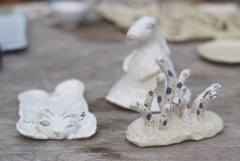 動物をモチーフにした3つのオブジェ。ユーモアのある表情豊かな可愛らしい作品です。どの作品も削りをせずレッスン時間内に完成させていらっしゃいます。