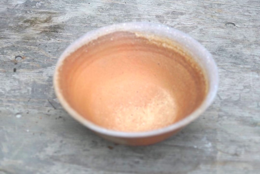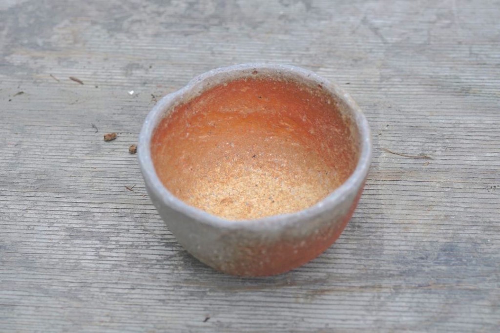 初心者コースを終えて間もないMTさん。電動ろくろで丁寧にきちんと作陶しています。今年の夏の強烈な太陽の下での撮影でラチチュードを超えており、画像では雰囲気がだいぶ違いいます。実際は鉄分の多い赤土に紫月窯オリジナルの恵那山土灰釉をかけているので落ち着いた仕上がりになっています。