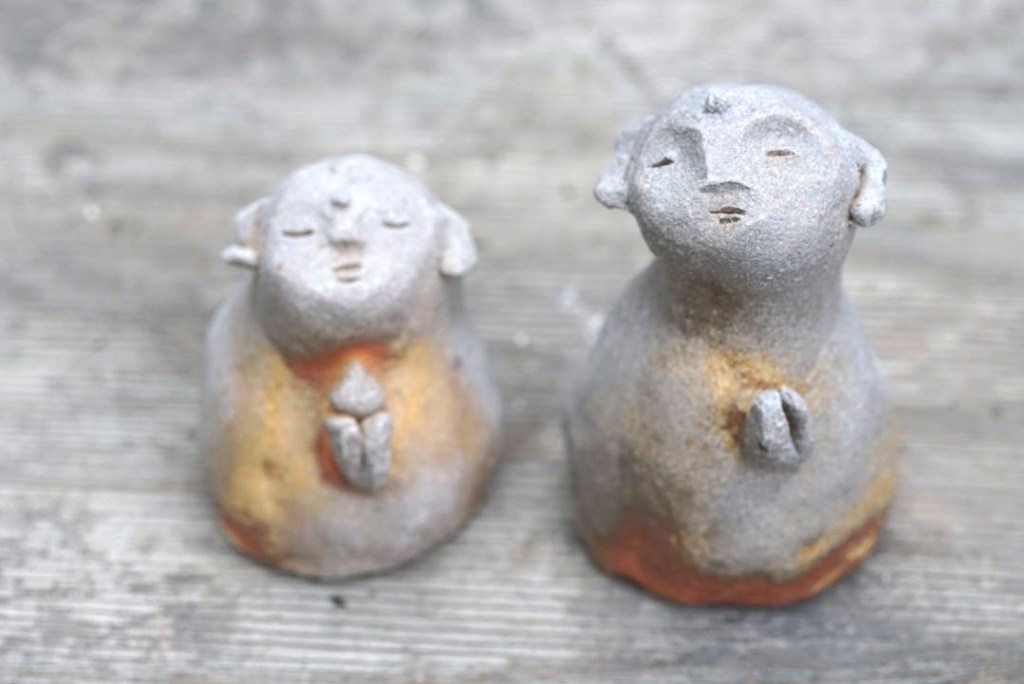 土灰の還元による自然な青磁色がでました。お地蔵さんのお顔がとっても良いと思います。